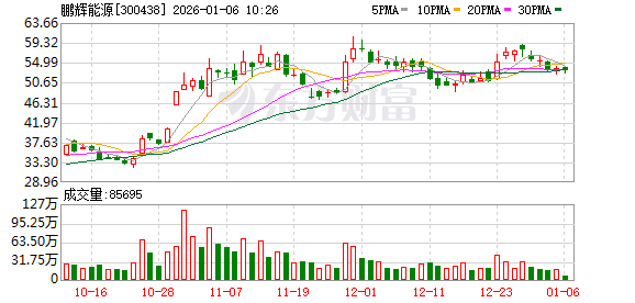 截至1月5日收盘,鹏辉能源股价报53.82元/股,上涨1.13%,最新市值为270.90亿元。近一年,该公司股价累计上涨超100%。