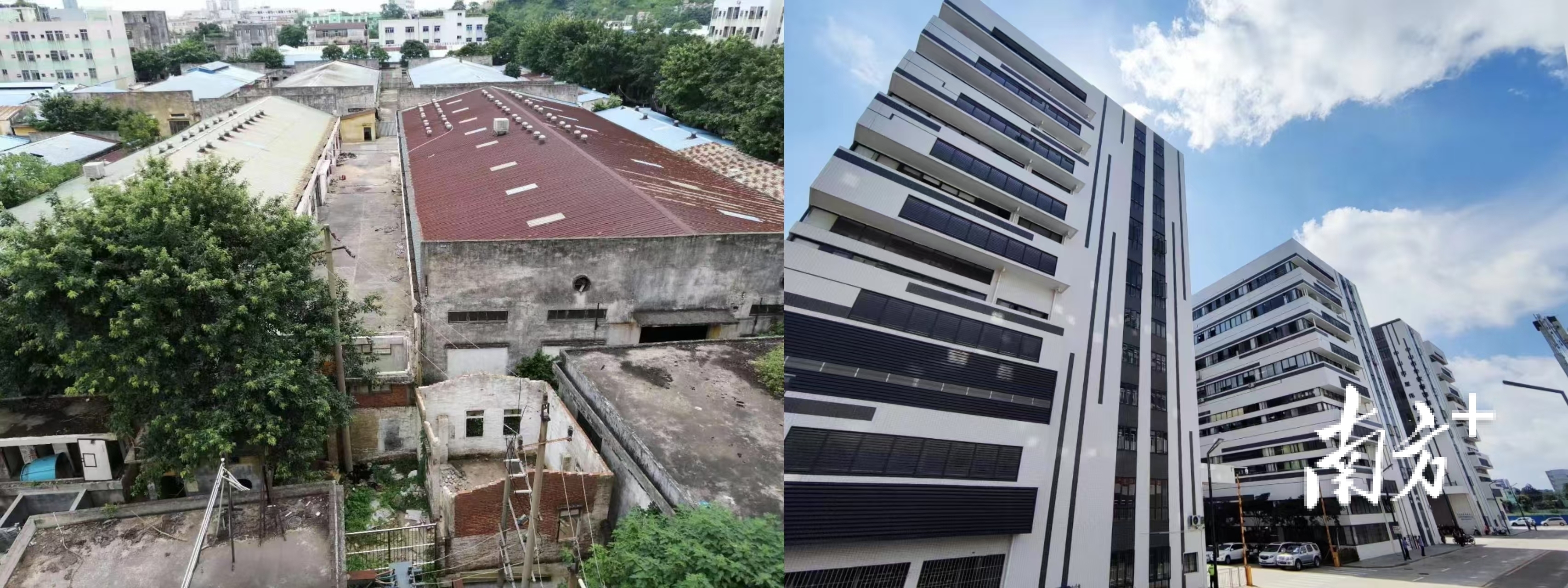 中山市东凤镇民乐社区和合工业园改造前后对比。