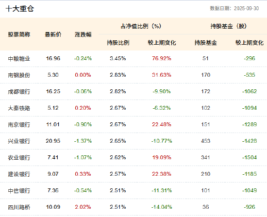 最新报道显示,红利低波ETF(512890)十大重仓股涨跌不一。具体为中粮糖业、南钢股份、成都银行、大秦铁路、南京银行、兴业银行、农业银行、建设银行、四川路桥、中信银行,持仓占比如下。