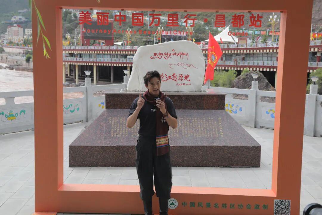 中国文艺志愿者协会副主席、著名表演艺术家、周恩来总理扮演者、中国风景名胜区协会形象大使刘劲在美丽中国万里行(昌都站)打卡点打卡