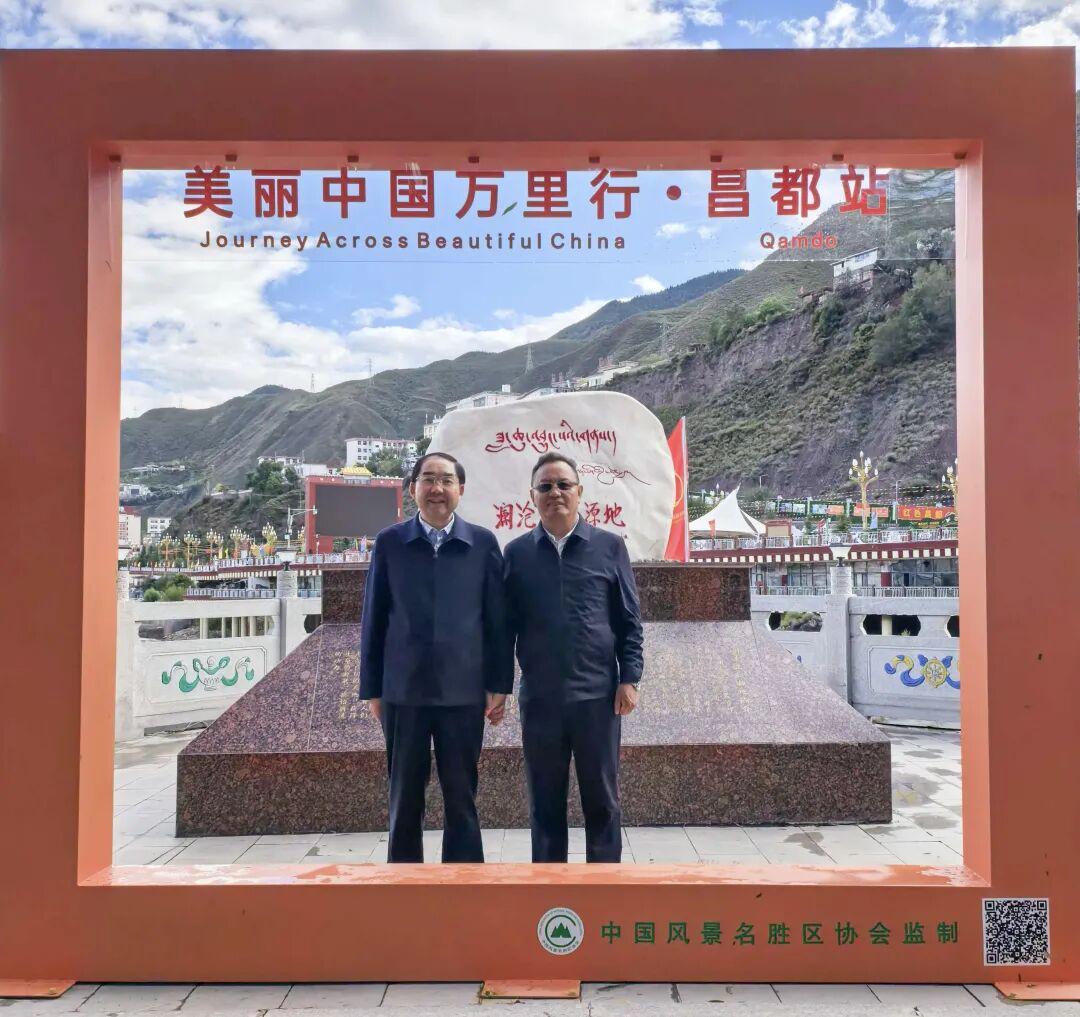 中国风景名胜区协会会长张永利和昌都市委副书记、昌都市市长罗庆武在美丽中国万里行(昌都站)打卡点打卡